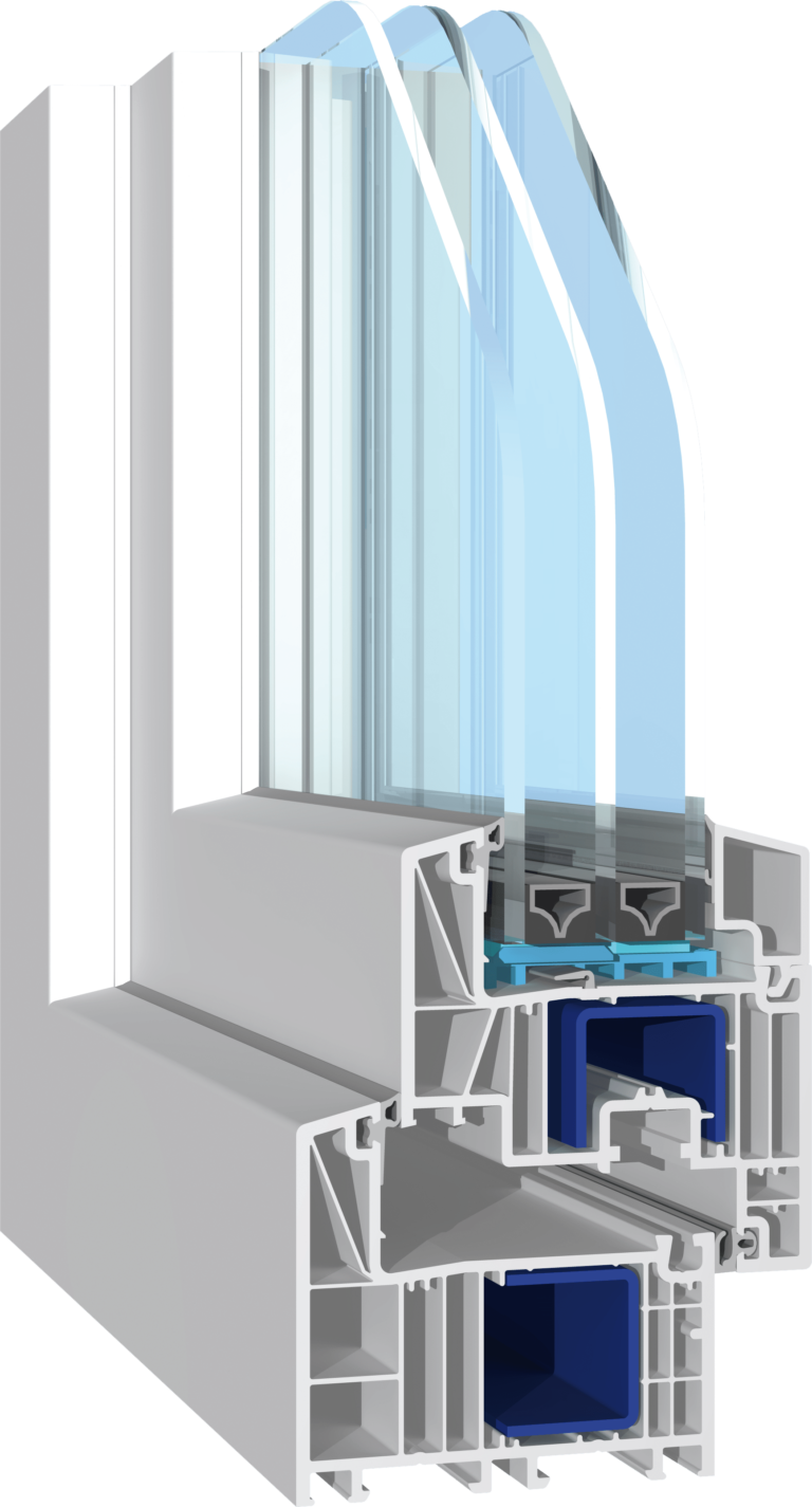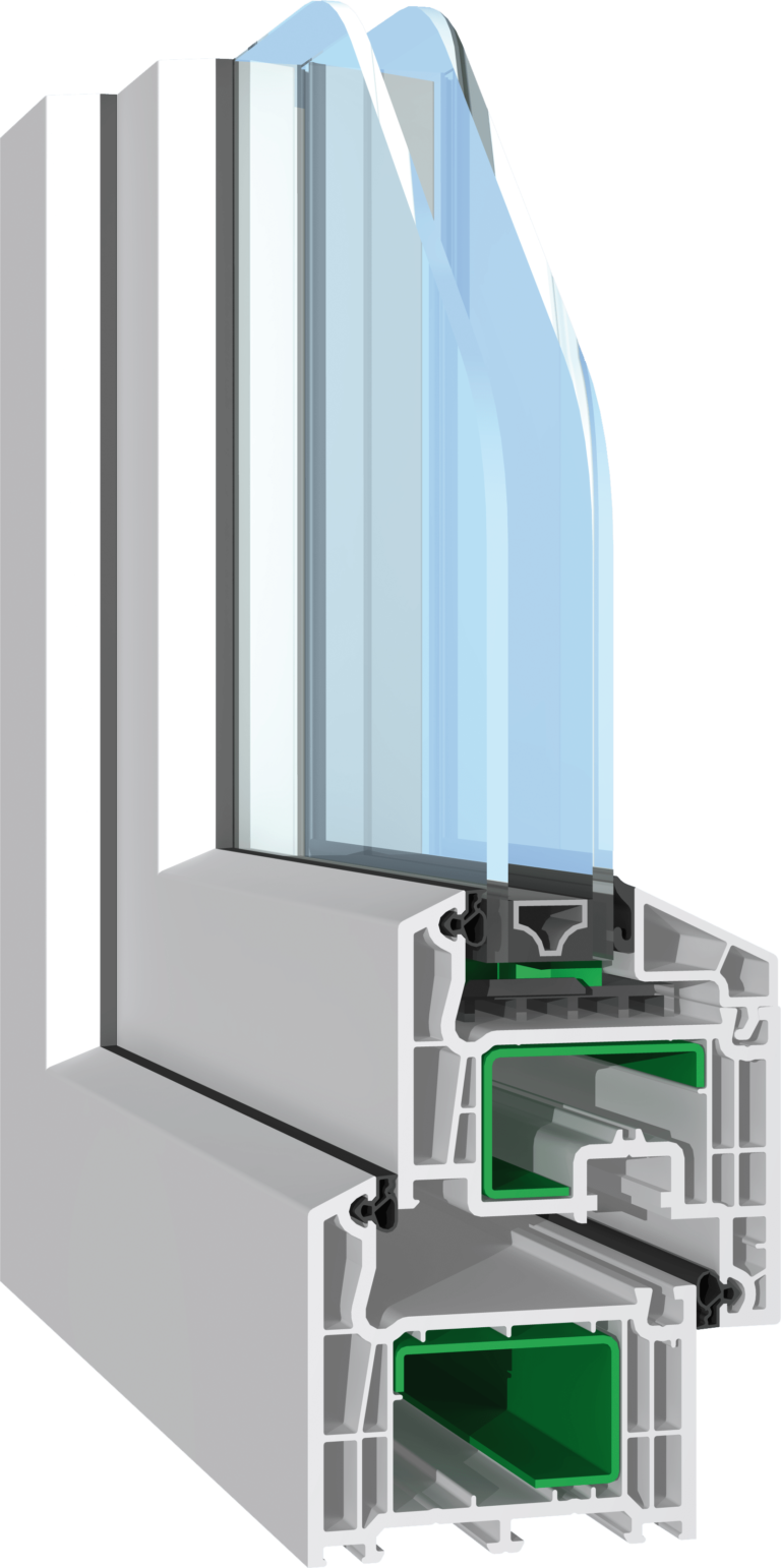 Specjalny system łączy w sobie 6-komorowy profil PVC o szerokości 82 mm z niezawodnym uszczelnieniem wielopunktowym, przy zastosowaniu 2-komorowej szyby termicznej o standardowym współczynniku Uw=0,5 W/m2k, osiąga jedne z najlepszych parametrów izolacyjności termicznej dostępne na rynku.